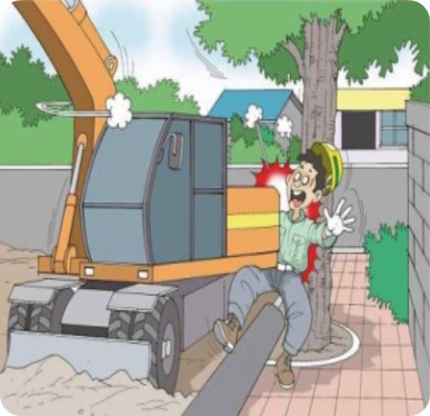 - 굴착기 근처에서 작업하던 근로자가 굴착기에 부딪힘