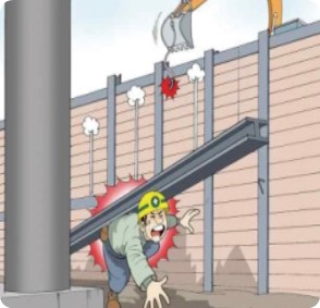 - 굴착기로 자재를 매달아 운반 중 날아온 버킷추락 또는 자재에 맞음 위험